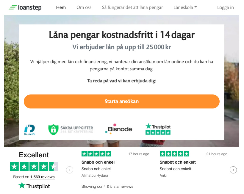 Slutligen gör Loanstep en manuell granskning av ansökan för att försäkra sig om att du kommer kunna betala tillbaka lånet. Eftersom Loanstep manuellt granskar alla ansökningar kan det ta upp till 24 timmar innan du får ett slutgiltigt besked på ansökan.